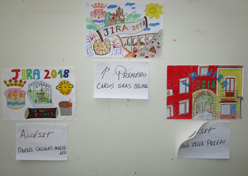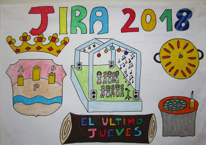 Asociación Cultural La Jira de Aspe ya tiene cartel anunciador de la Jira 2018. El jurado reunido en la mañana del domingo 26 de noviembre en la Plaza Mayor, donde se exponían los más de 700 dibujos presentados por escolares de la localidad, ha seleccionado el trabajo de Carlos Gras Brufal como cartel anunciador de la fiesta del Último Jueves 2018.
