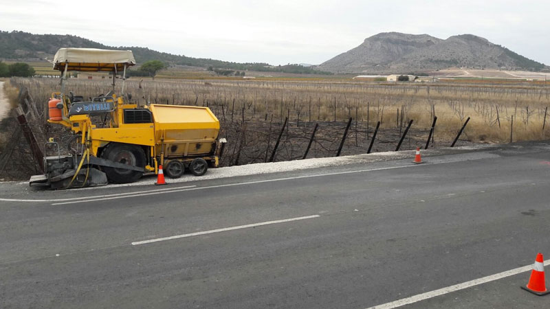 Esta mañana se ha procedido a la reparación del tramo de carretera entre Aspe y La Romana afectado por la explosión en la mañana de ayer lunes de un camión de reparto de bombonas de butano. Los hechos ocurrieron ayer lunes en torno a las 9.30h, cuando el conductor de un camión cargado de bombonas de butano detenía la marcha tras incendiarse la cabina. Acto seguido comenzaron a arder las bombonas, generando una intensa nube de humo y fuertes explosiones.