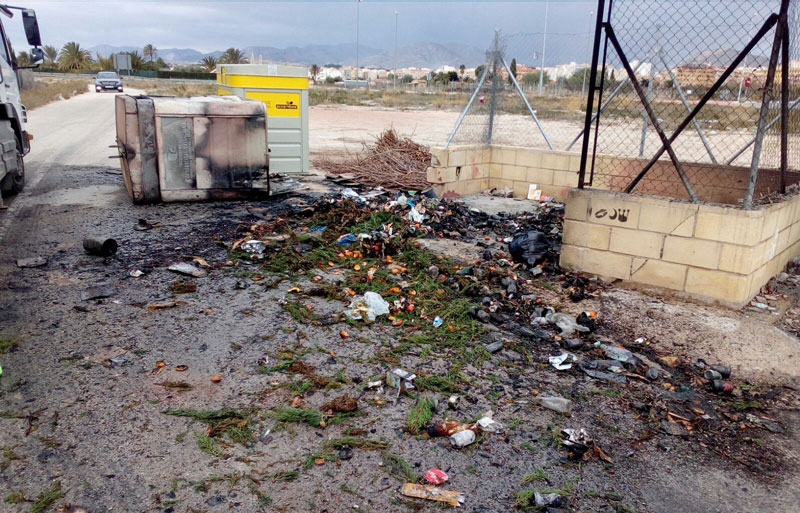 En la madrugada del domingo al lunes prendieron fuego a 36 contenedores de basura y selectivos situados en distintos puntos del término municipal de Novelda. El responsable de Calidad Ambiental de Novelda, Francisco Javier Cantos, ha calificado esta quema de “actuación intencionada con el único objetivo de causar daño al Ayuntamiento”.