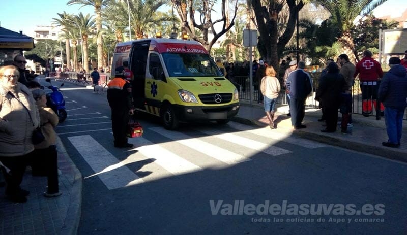 Un caballo desbocado ha provocado un accidente en la romería de San Antón, celebrada esta mañana en las calles de Aspe en torno a las 12.30h. El equino ha saltado la valla del parque Doctor Calatayud, a la altura de la calle Sacramento, chocando con dos espectadoras de unos 40 años, vecinas de Aspe, que estaban observando la romería. Una de ellas ha sufrido el golpe directo del caballo, que le ha caído encima provocándole traumatismo craneoencefálico y contusión abdominal. El SAMU la ha trasladado al Hospital del Vinalopó, donde se encuentra en observación. La otra espectadora también ha sido trasladada al Hospital del Vinalopó en una ambulancia SVB con un golpe en la muñeca, siendo dada de alta más tarde.
