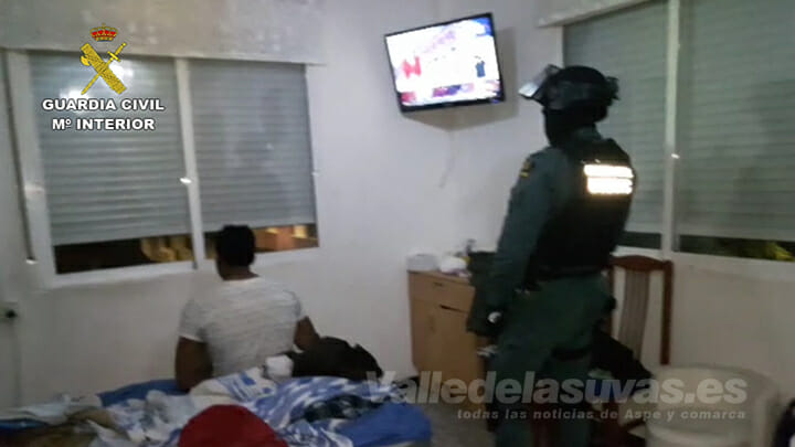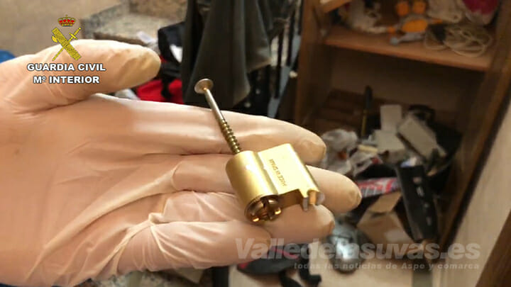 El Equipo de Delitos contra el Patrimonio de la Guardia Civil de Alicante junto con el Equipo de Policía Judicial de la Guardia Civil de Novelda han detenido a cinco miembros de un grupo criminal dedicado a la comisión de robos con extremada violencia en casas habitadas de poblaciones de la comarca del Vinalopó Medio. El modus operandi empleado por esta banda era el de estudiar los movimientos de sus víctimas y aprovechar los momentos en los que sabían que se encontrarían solos para acceder a las viviendas intimidándolos a punta de pistola o poniéndoles un cuchillo de grandes dimensiones en el cuello, para después maniatarlos con bridas durante los minutos que durara el asalto. Para evitar ser reconocidos, hacían uso de máscaras, gorras y pasamontañas, además de tener a las personas amenazadas de muerte constantemente mientras registraban sus casas en búsqueda de joyas y dinero, forzándolos a facilitar las claves de la caja fuerte. Así lo hicieron en tres robos cometidos entre el mes de junio y el mes de noviembre de 2018 en Novelda, Pinoso y Aspe.