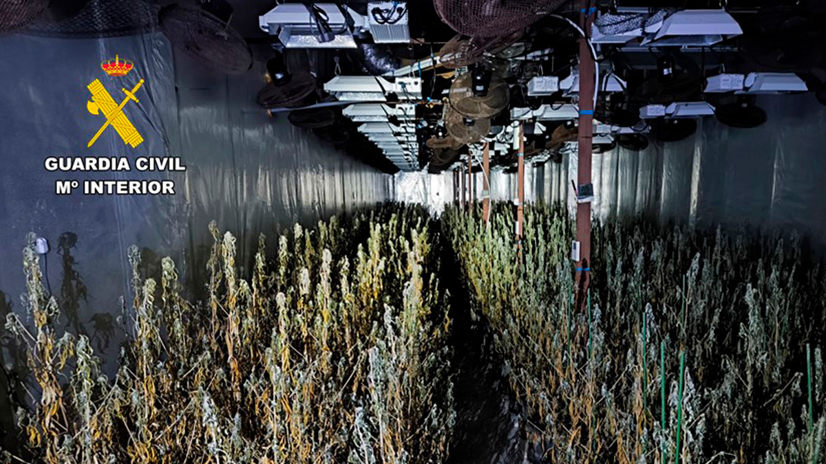La Guardia Civil ha desmantelado una importante plantación de marihuana ubicada en dos naves industriales del término municipal de Aspe, donde se cultivaban más de 2.400 plantas en diferentes fases de crecimiento.