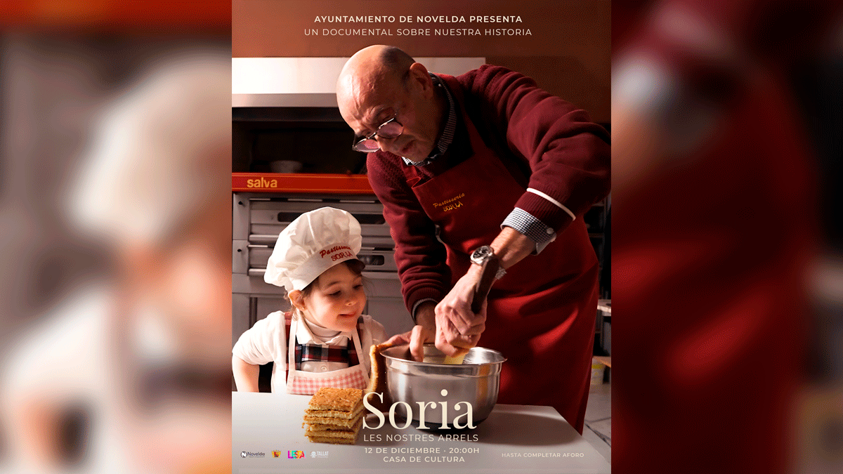 El Ayuntamiento de Novelda ha presentado “Les Nostres Arrels”, una iniciativa municipal que tiene como objetivo poner en valor la historia, las tradiciones y los negocios emblemáticos de la ciudad a través de una serie de audiovisuales. El proyecto se estrenará el 12 de diciembre, a las 20:00h, en la sala de conferencias Román Torregrosa de la Casa de Cultura, con la proyección del primer documental, dedicado a la histórica Pastelería Soria.