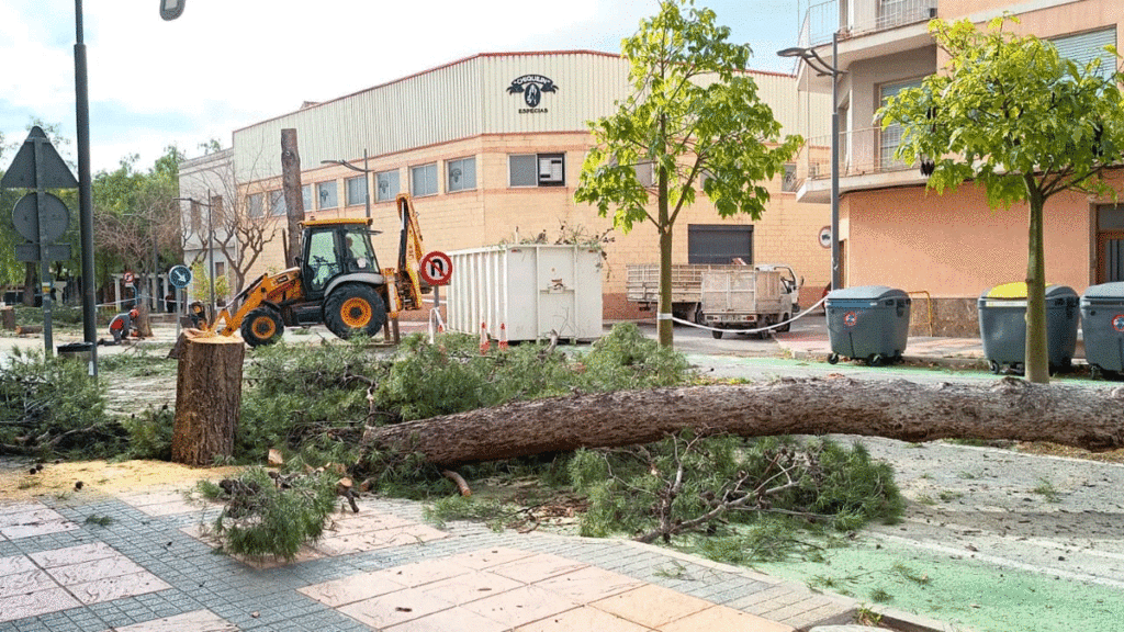 En el Paseo de los Molinos, uno de los árboles fue talado por los bomberos ante el riesgo de caída, provocando además el derribo de otros ejemplares próximos, lo que llevó a la retirada preventiva de cuatro pinos adicionales.