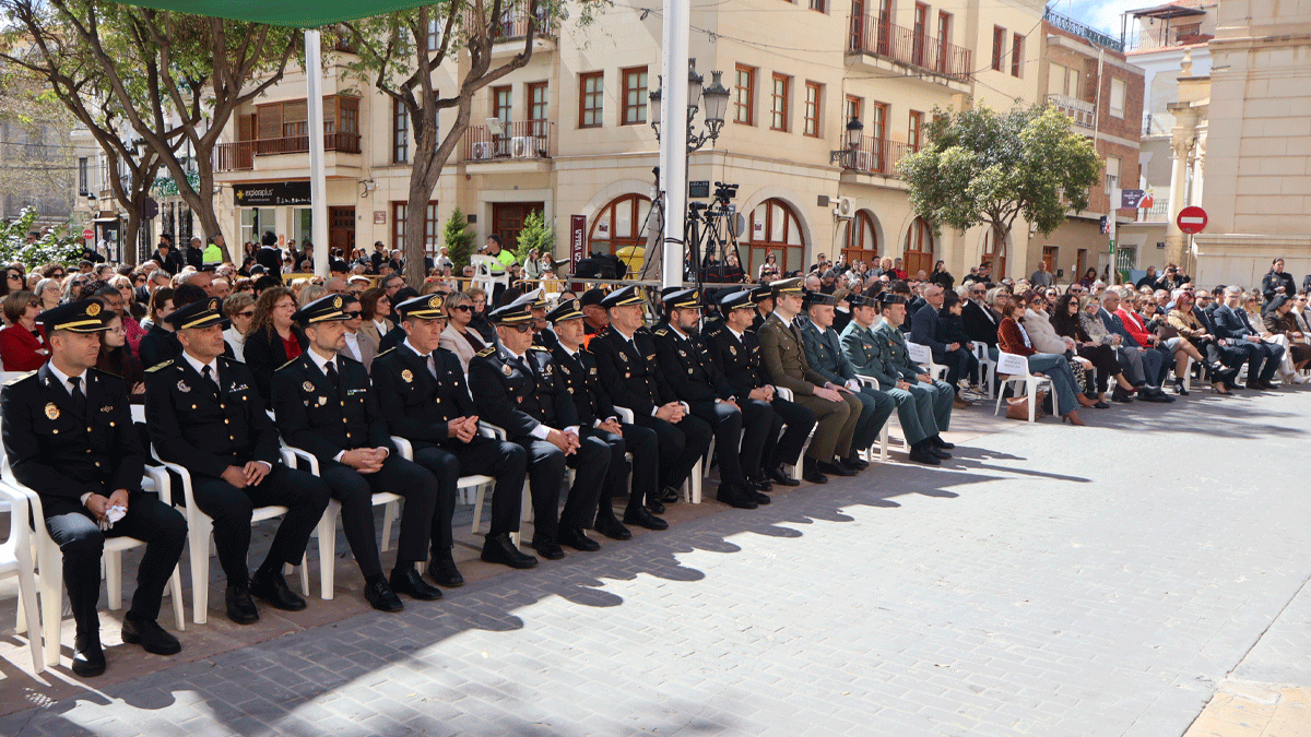 El acto ha estado presidido por el alcalde Fran Martínez y ha contado con la presencia del concejal de Seguridad Ciudadana, Ximo Mira, el intendente jefe de la Policía Local, Rafael Sarrió, miembros de la corporación municipal y representantes del ámbito judicial, además de efectivos de Guardia Civil, Policía Autonómica, Protección Civil y Policía Local de diferentes municipios. También ha asistido el director general de Seguridad Pública de la Generalitat Valenciana, Erich Vanacloig.