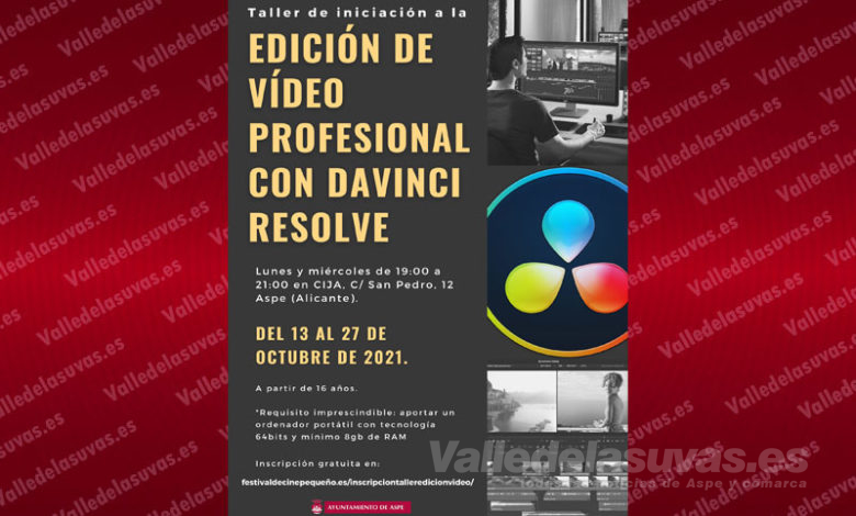 La concejalía de Cultura del Ayuntamiento de Aspe organiza un Taller de edición de vídeo profesional. El taller es gratuito…