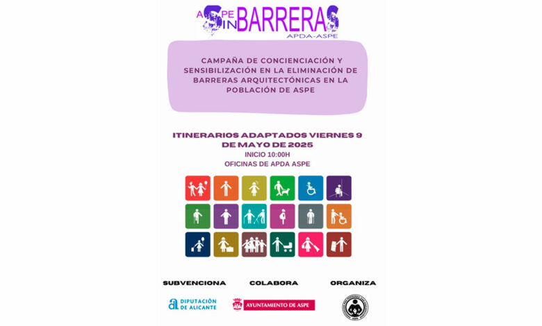 #Aspe: APDA vuelve a poner en marcha una campaña de concienciación y sensibilización sobre la eliminación de barreras arquitectónicas
