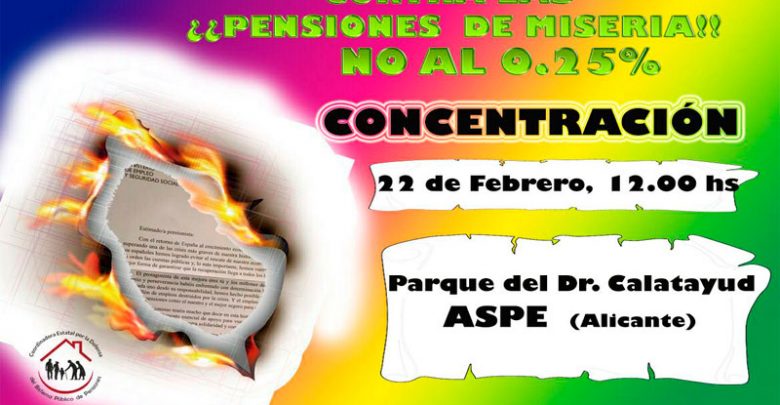 Varios jubilados de Aspe están organizando una concentración por una jubilación digna que tendrá lugar este jueves a las 12h…