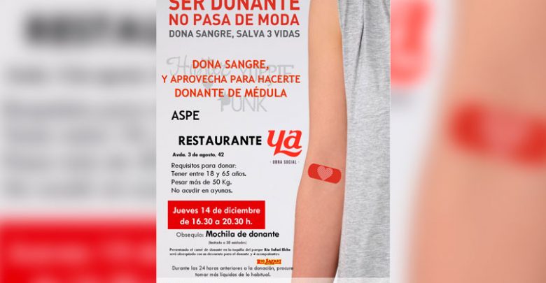 Este jueves hay una donación de sangre extraordinaria en el Restaurante Ya de Aspe. En esta colecta, los asistentes también…