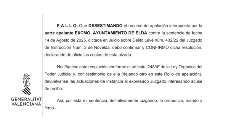 #Aspe: La Audiencia Provincial de Alicante confirma la absolución de Iván Escobar y desestima el recurso del Ayuntamiento de Elda