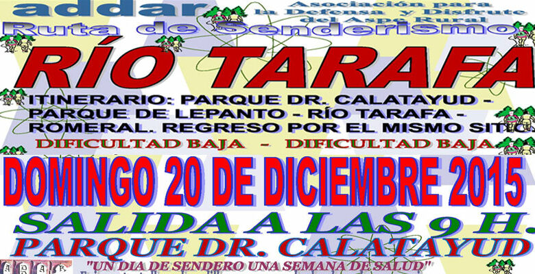 ADDAR organiza este domingo una salida senderista por el río Tarafa que partirá del parque Doctor Calatayud a las 9 de…