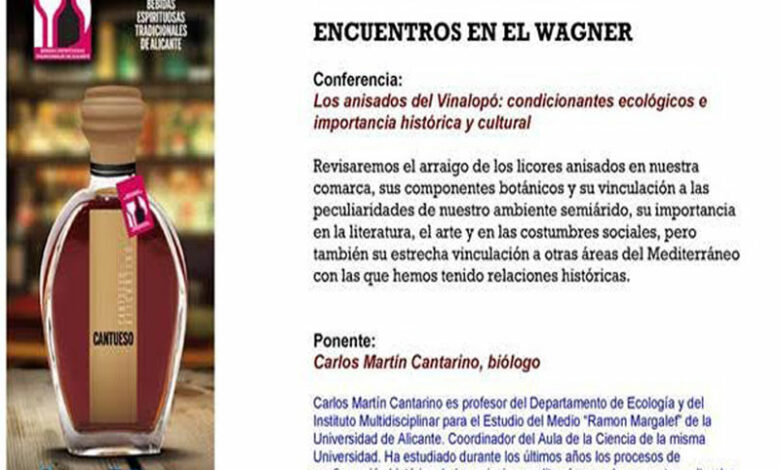 Viernes 18 diciembre Encuentros en el Wagner. Conferencia: Los anisados del Vinalopó: Condicionantes ecológicos e importancia histórica y cultural. Por…
