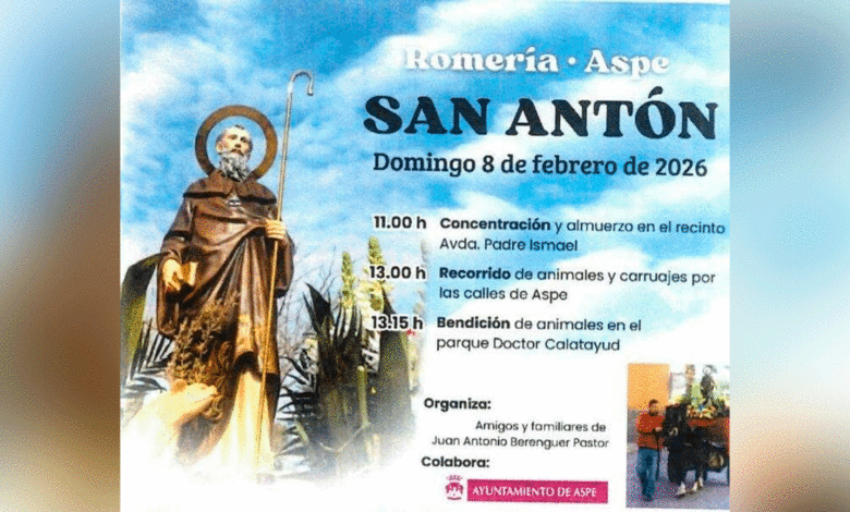 Aspe celebrará el próximo domingo 8 de febrero la festividad de San Antón, una cita ya consolidada en el calendario…