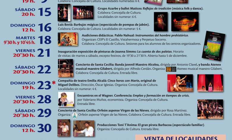 Programación del Teatro Wagner durante el mes de noviembre.
