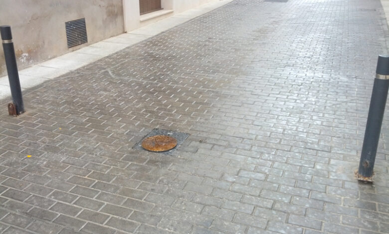 Encharcamiento de agua en el Polígono Industrial Tres Hermanas de Aspe