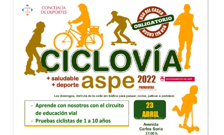 La Ciclovía suma una nueva edición en Aspe. La nueva cita será el próximo sábado 23 de abril, en la…