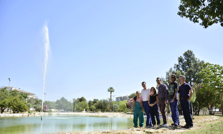 #Elda: Se pone en marcha el géiser del lago de los Jardines del Vinalopó