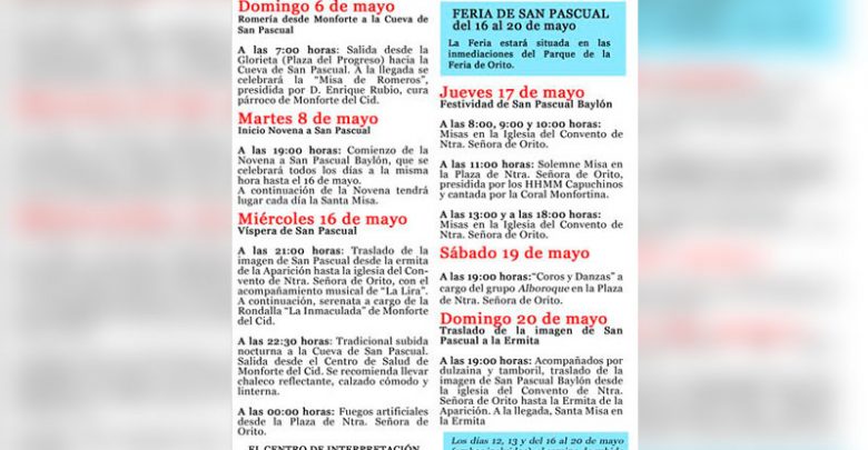 Este jueves se celebra la festividad de San Pascual Baylón en la pedanía monfortina de Orito. Previamente, el miércoles 16,…