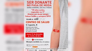 Este jueves hay donación de sangre en el Centro de Salud de la calle Lepanto de Aspe. Será de 16.30…