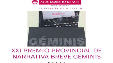 La concejalía de Juventud del Ayuntamiento de Aspe ha convocado el XXII premio provincial de narrativa breve Géminis en el…