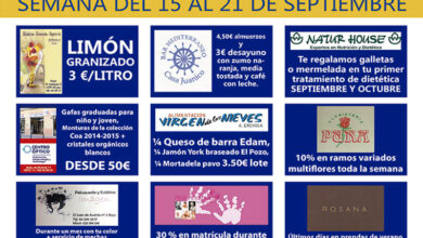 Los establecimientos con descuentos del 15 al 21 de septiembre, son: Heladería Jijona, Centro Óptico, Peluquería y Estética Imagen, Bar…