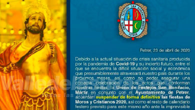 La Unión de Festejos San Bonifacio, Mártir de Petrer ha decidido de manera unánime la suspensión definitiva de las Fiestas…